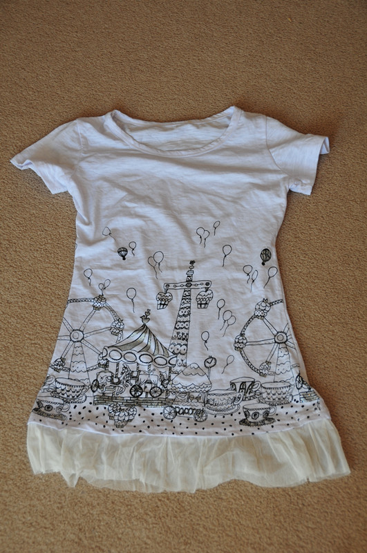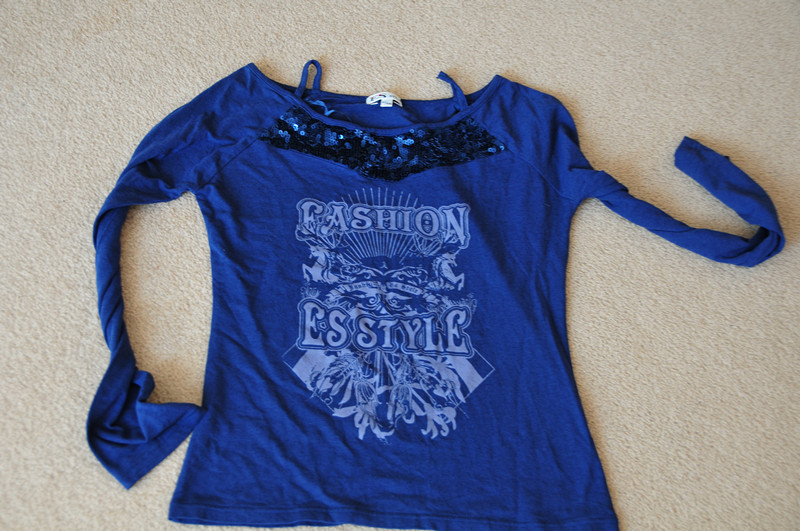 T恤,下面带一圈蕾丝花边,我穿着有点小,适合瘦一点的女生。卖$3。