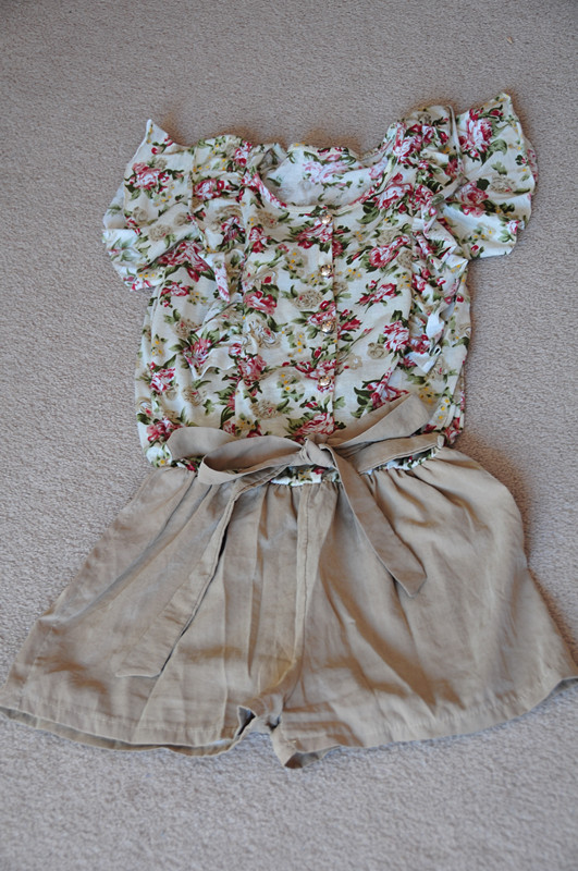 碎花连体裤,我自己的号,且穿着很显瘦。卖$5。
