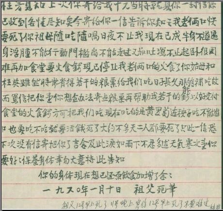 李筱峰,安徽巢湖人,在写完这封信第二日,因饥饿而亡。