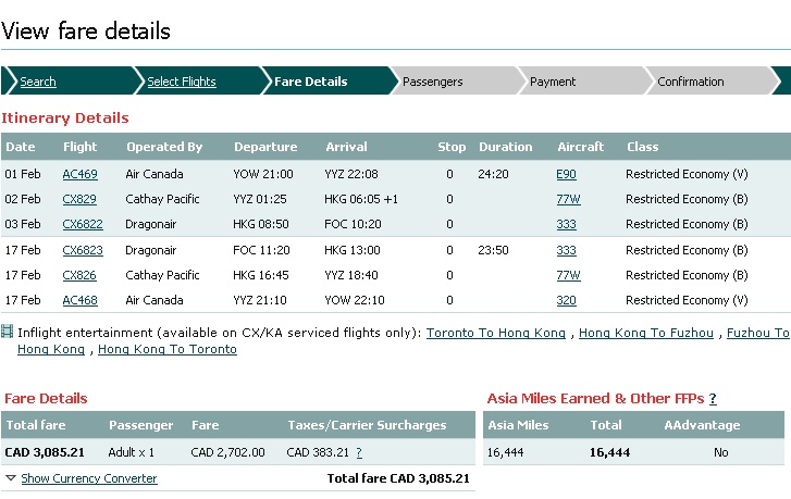 航空公司不一样 http://www.cathaypacific.com/狗子同学貌似要回咱们那儿过年?这价格有点坑爹呀,好奇地问一下是在哪个网站订的?我在Expedia上看到的同样日期从村里到香港来回(不包括香港-福州来回)