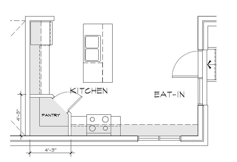 买一个single house (~3000sq.ft)。 当前厨房布局如前两图。LP想在厨房里加一个walk-in pantry,builder给了一个方案如最后图。