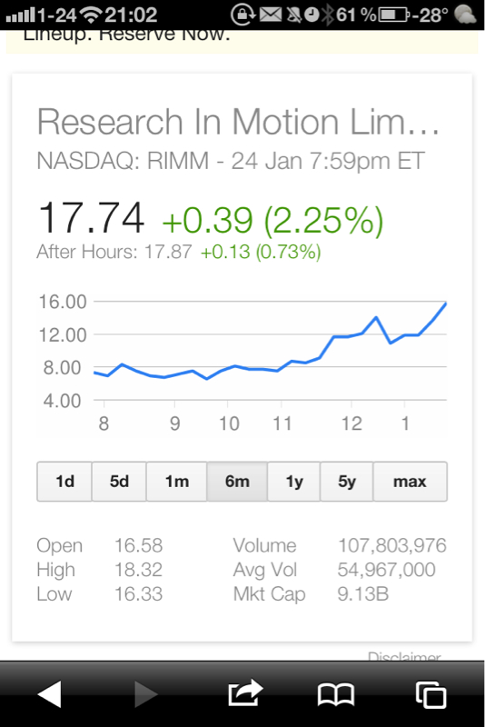 ccc 难得糊涂 管理成员 VIP 注册 2003-04-13 消息 238,368 荣誉分数 37,530 声望点数 1,393 2013-01-24 #148 mimi_ge 说: 那股票就要回到6元了。 btw,今天short 了rimm 18元 100股 点击展开... 我准备$8.88进,一直没有机会。