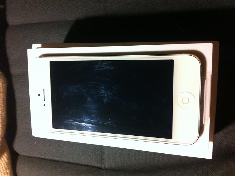 卖一台9.5成新IPHONE 5 白色. 正反面贴膜。包装盒,充电器,耳机全部都有。去年11月买的,还在保修期间! 64GB 无锁 FACTORY UNLOCKED。 要价 850刀,原价加税$1000.已更新6.1 ISO。 6.1的破解即将发布,想破解的便自行动手。有需要的请QQH 联系。SOLD