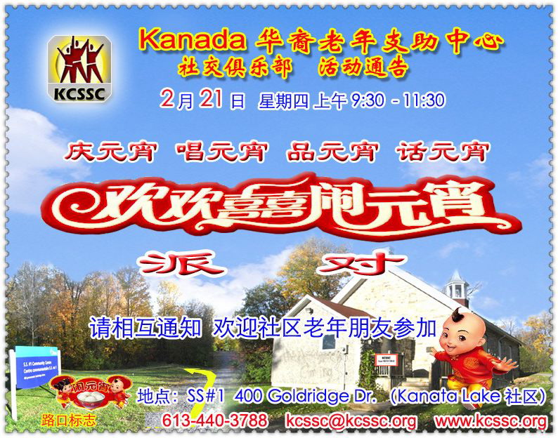 Kanata华裔老年支助中心Lake地区2月21日元宵派对活动通知
