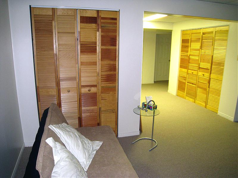 Kitchen and all bathroom cabinets resurfaced with chocolate stain (2012)