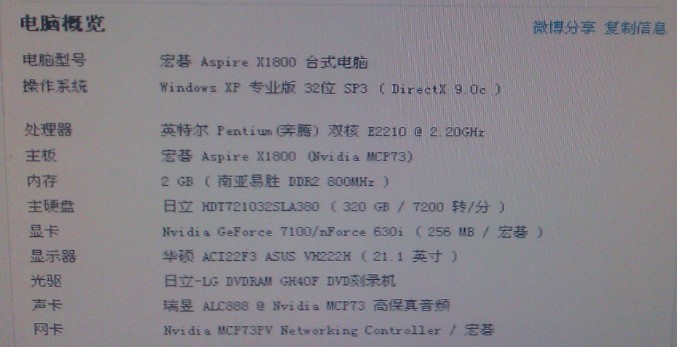 宏基电脑+20' Hp2009M液晶显示器一共199 cad