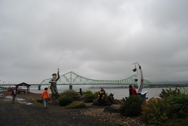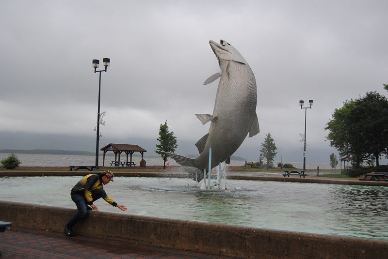 我们六点半就离开New Brunswick的ATLANTIC INN洒店往回走,一小时多点的车程来到campbellton NB,这个与QUEBEC省一河之隔的小镇在雨雾中给人一种神秘、祥和的感觉。传说中有一渔人钓到一条特大的三文渔。