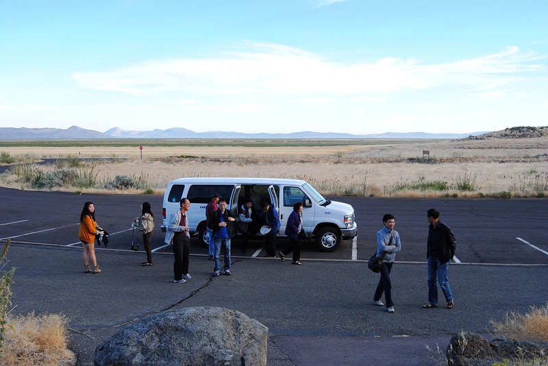 接着前往游客中心,路经一个小小的观景台,见到的都是流出来的、黑黑的、象沥青似的土地,寸草不生。这是一对从中国来探亲的夫妇团友。