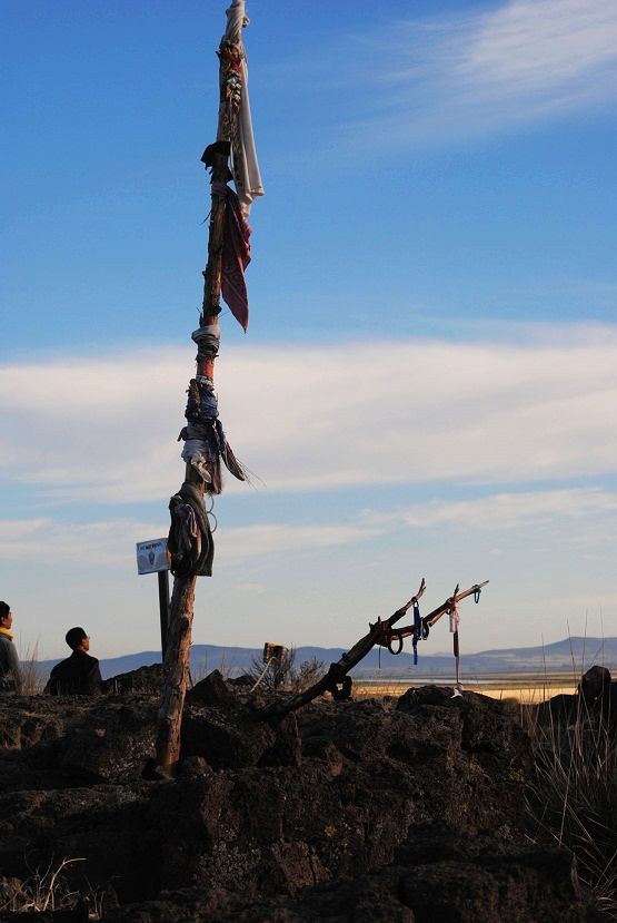 在开往古代战场的路上到处见到乌黑的火山溶岩。八百年前这地方都是火山活跃区。真是触目惊心的景像。