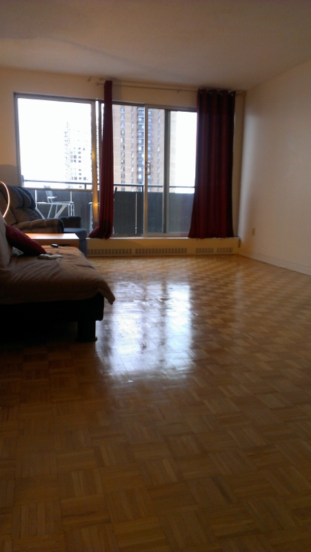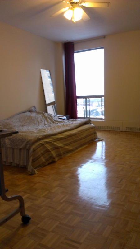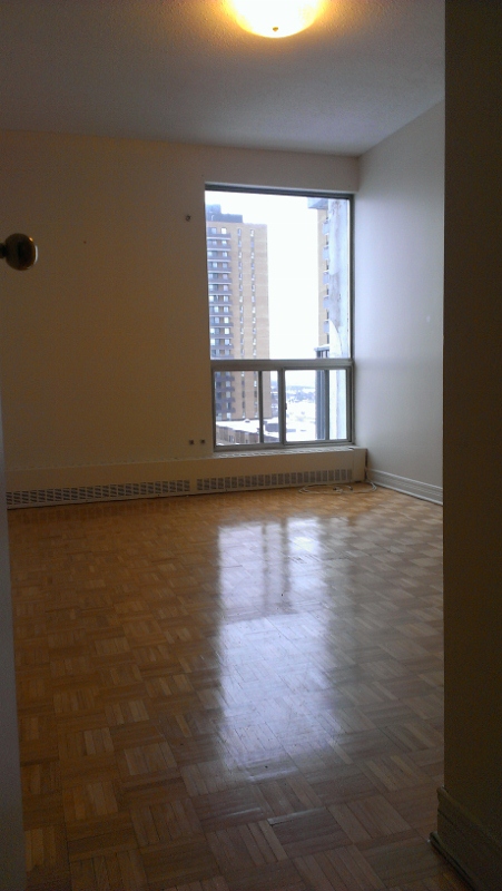 在St-Laurent blv 街口,门口有公交7路及5路直到C.U和路直到O.U(15分钟) 及Rideau /St-Laurent shopping mall(5分钟),交通方便,安全,地奌优越,大廈住客品质特好。2大房(房内有衣物间)及大廳,柚木地板,大落地窗。光線充足,特大衛生间。月租1089全包,水,电,暖气,(有夏天游泳池)急轉租。免首月租金或回贈現金1000元。租约至8月31号,再绩簽或月租。請电613-8681326
