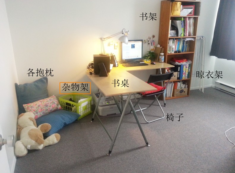 第四图 书桌--30(已出) 椅子--5(已出) 书架--30 晾衣架--2 (已出)淡绿杂物筐--2
