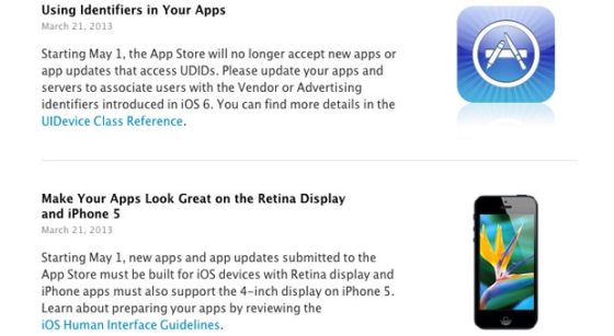 新浪手机讯 3月22日上午消息,据国外科技网站9to5mac报道,苹果今日宣布不再接受可访问iOS设备UDID的应用申请或应用更新,该规定将于今年5月1日起开始实施。
