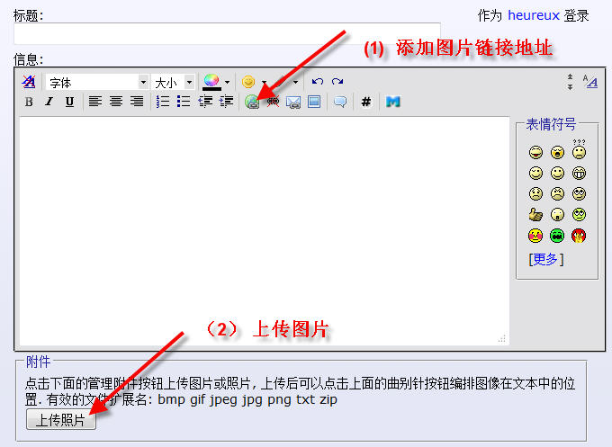 发帖子,相加图片。不知道怎么输入图片的链接地址。