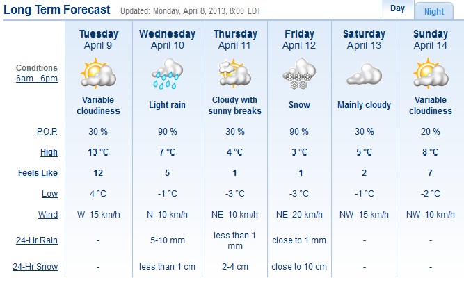 Jingle 本站元老 VIP 注册 2004-01-06 消息 11,122 荣誉分数 4,087 声望点数 373 2013-04-08 #3 天气预报会变的,到时候再看喽。 再说温度还是上来了,就算下雪,化的也很快的,木有什么可怕的吧。