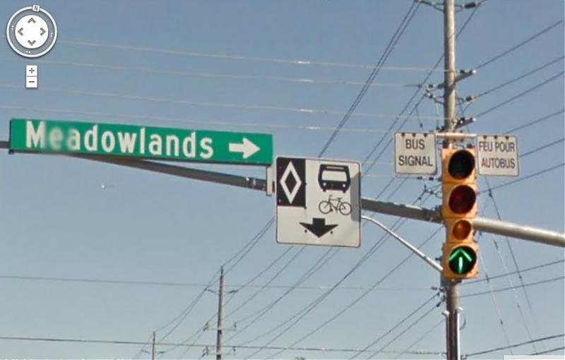 在Woodroffe 路上有几个这样的路口,Transit Bus 线上的交通灯柱子上比别的多一个Bus专用灯。当本方红灯转左转绿灯时,这个Bus灯会亮2到3秒钟,让Transit 线上的Bus也可以走。