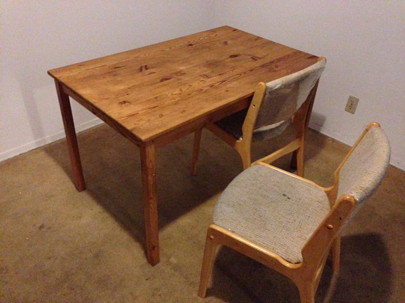 全新T-fal 不沾炒锅 size 中等 带锅盖 (只是图片里那个大的) 独有热点技术 在锅中间有一个圆点 锅烧热了 会变色 便于控制油温 原价38税前 现在只要25-->20 只要20从来没用过 放在那里可惜了 地址在 180Lee 我没有车需要自取 悄悄话联系 或者短信我 6136188595 如图椅子四把 木头椅子 比宜家的铁的那种舒服很多很多 四把椅子加图中桌子 桌子有点旧所以便宜卖了 一共39 刀