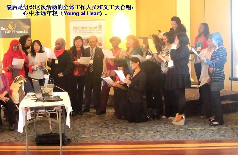 2013年4月10日,犹太人家庭服务中心、华人社区服务中心、索马里家庭服务中心、西南渥太华社区健康中心、锡克社区服务中心、渥太华移民服务中心等八个社区服务中心联合主办的“多元文化长者健康生活活动日”在215 Preston St的会议大厅举行。中国乐队、腰鼓队以热情洋溢的乐声和鼓声迎接各族裔长者入席,300余人共聚一堂。活动形式多样、内容丰富多彩:有文娱节目、有专题报告、有幸运抽奖、有宣传摊位、还有餐饮等,所有这一切都是为提高长者健康生活的质量而服务的。专题报告和文娱节目及抽奖活动交叉进行。