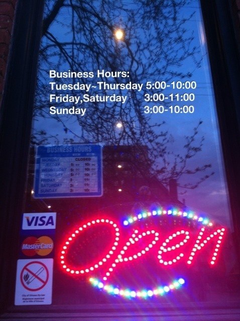新business hours:Monday : close Tuesday: 12:00pm〜2:30pm 5:00pm〜9:00pm Wednesday: 12:00pm〜2:30pm 5:00pm〜9:00pm Thursday: 12:00pm〜2:30pm 5:00pm〜9:00pm Firday: 12:00pm〜10:00pm Saturday: 12:00pm〜10:00pm Sunday: 12:00pm〜9:00pm
