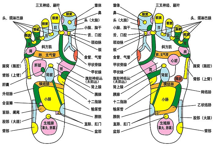 在针对某种身体不适进行调理时,正确顺序:基本反射区--症状反应区--关联反应区—基本反射区 (先做左足,再做右足)