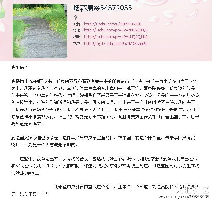 -天元- 新手上路 注册 2011-10-14 消息 215 荣誉分数 19 声望点数 18 2013-05-09 #1 受人民日报鼓舞,朱令班团支书发声: 附件 141865504.jpg 139 KB · 查看: 874