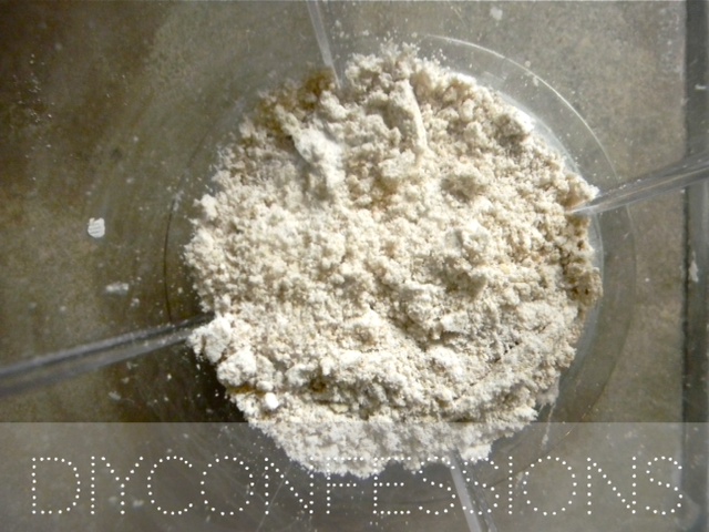 1. Finely grind the oats to a powder/flour consistency and set aside. {You can use a blender, food processor or a Magic Bullet type of appliance.}