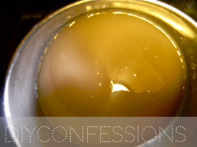 6. Once all ingredients are mixed, remove from heat and pour in to a small storage container. {It filled up 1 1/2 baby food jars.} Let it harden for several hours.