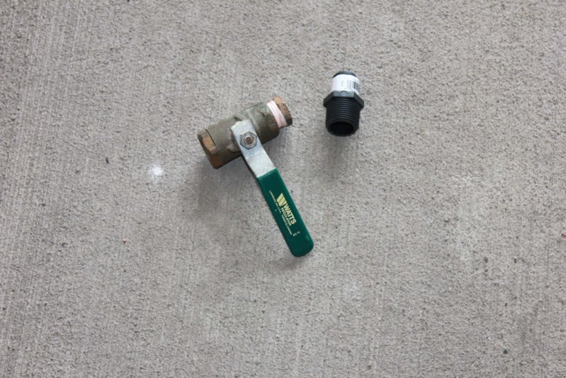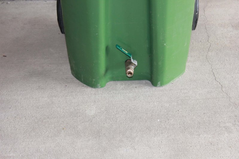 Compost Bin不仅可以做固体肥料,也可以顺便生产点液体肥料,这样浇花盆里的花就方便多了,所以先在垃圾桶的底部装个水龙头。买个3/4转1/2的塑料接口,又在我的百宝箱里找了个旧龙头。
