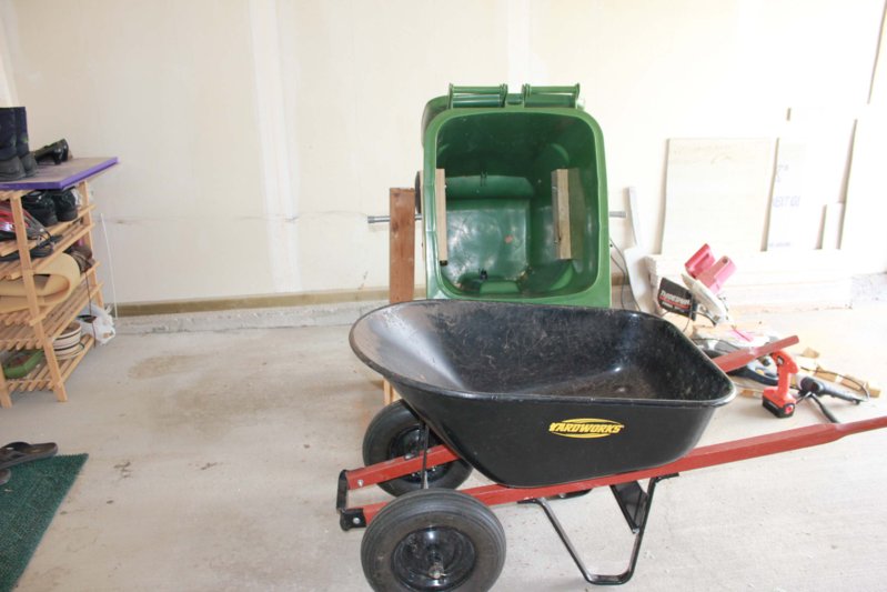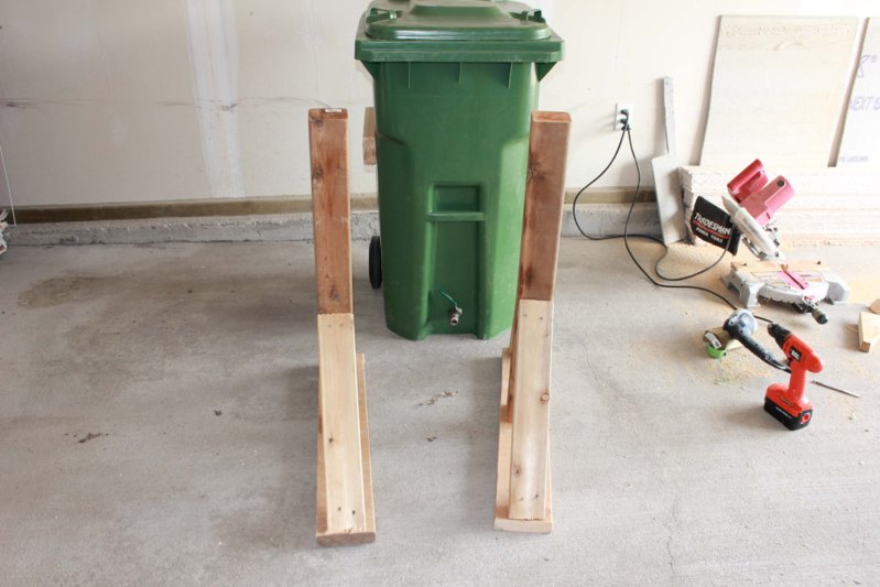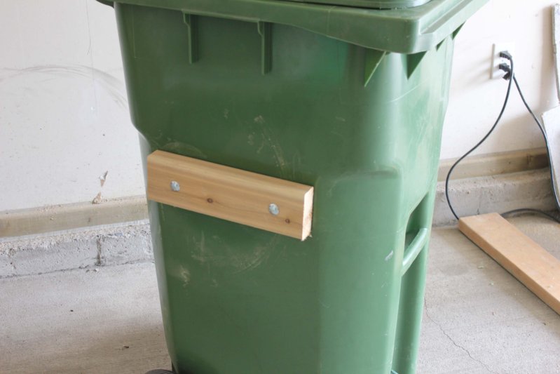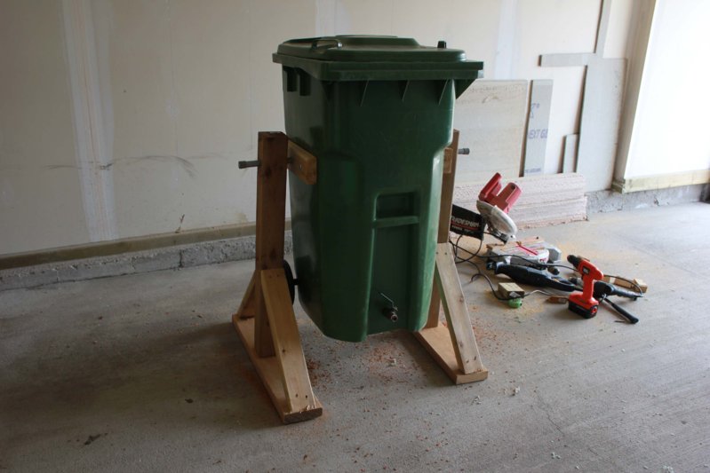 不过我希望产量高点,所以决定加入搅拌系统。先把垃圾桶的两侧用2x4加强。