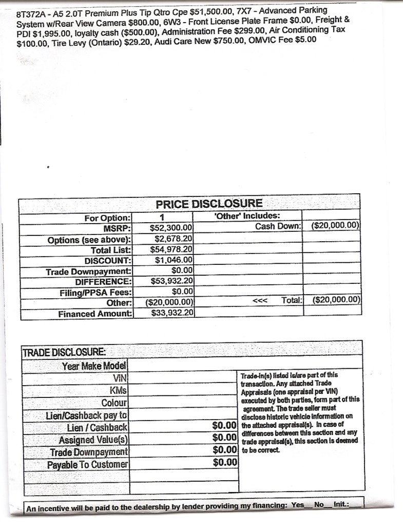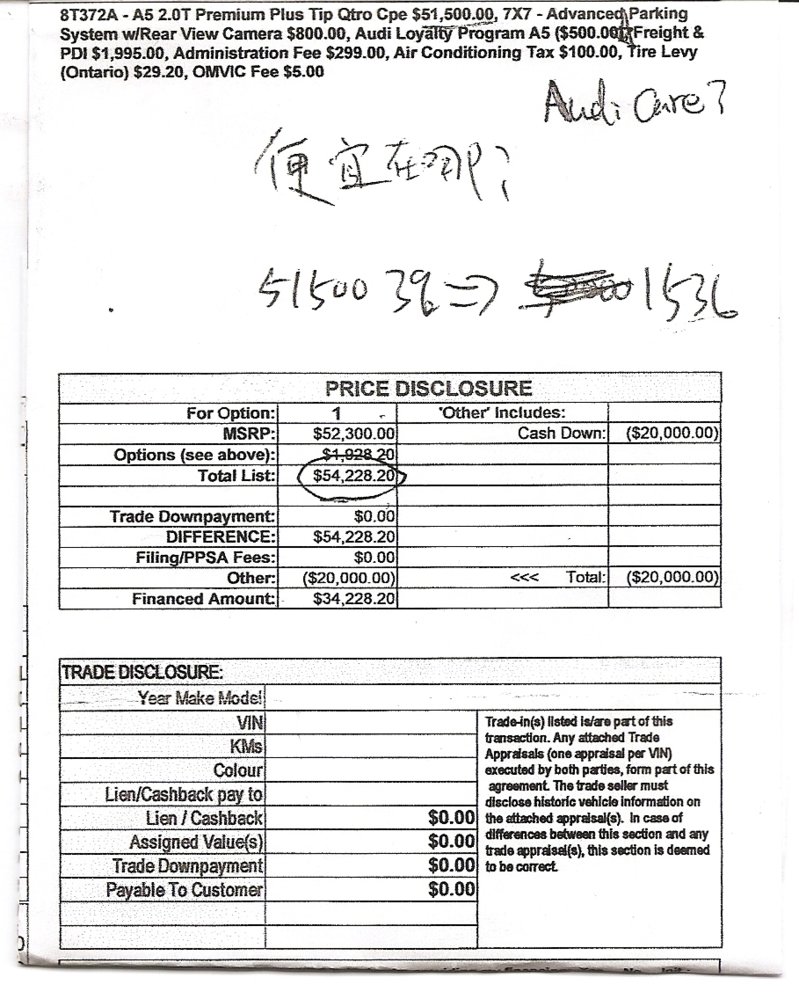 这是老外的有很明确折扣的订单。总价比原来高750的原因是我加了个audi care,但是有一栏很明显写着discount。(折扣是2%,因为上周的活动已经过了)