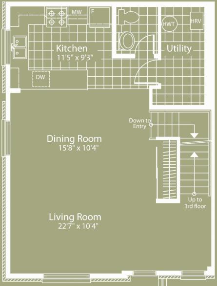 • Living/Dining room: 22’7” + 15'8’’ x 10’4”