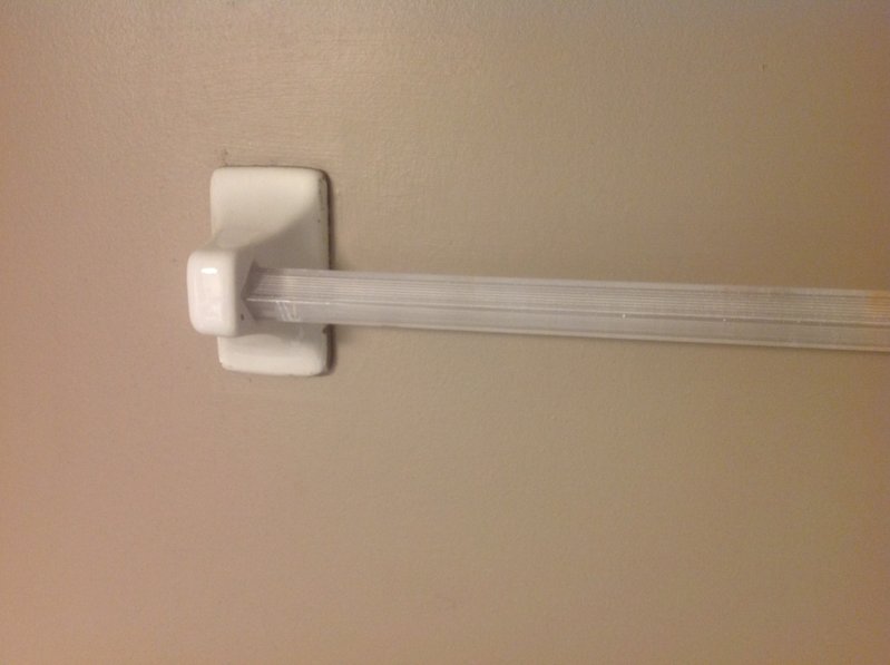 这个浴巾架确实是用工业强力胶粘上去的。我最后打听一圈下来,只有两种拆法,要么就用drywall knife撬下来,要么就用榔头砸下来。我最后选择用刀撬下来。