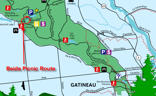 泊车可在Mulvihill Lake 或Lauriault Trail 停车场,共80多个车位。