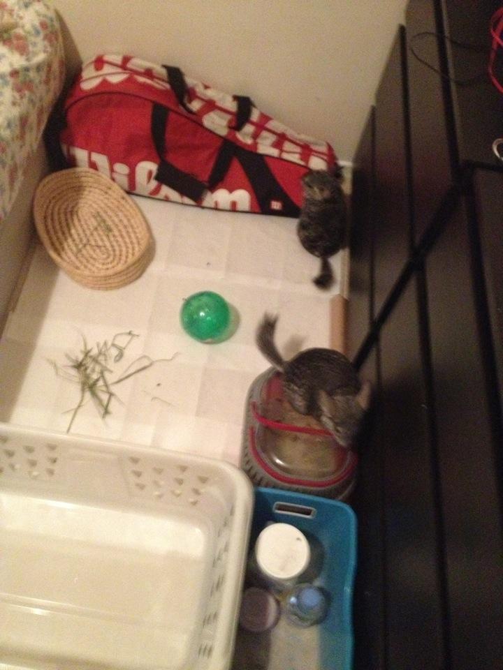 我家龙猫一公一母, 今天刚拿回家 , 俩都一年了,从小被阿姨照护着, 很乖, 阿姨由于原因不能养了,我就拿回家了很可爱啊, 但是, 公的活泼的要命 不怎么叫,跳的。。跟尼玛我。。。。无语啊,那弹跳力太可怕了,我后悔把他们放出笼子了, 为了抓那俩只 他们躲那个书柜 我一下冲过去准备抱住。。他一个跳。。。从我头上+身飞过去了。。。我悲剧的直接飞向书柜。。。我头上都撞了1个大包。紫了啊!!!!完全抓不住啊,战了快半个小时 才抓住一只。还是好像是累了跑不动 就乖乖的被我抱起来,那一刻我真想哭了。。我。。。真的快累晕了, 头上包痛的要命 还把他们放回笼子 他们不肯回去 不满意 叫个不停 , 只能在放出来 我在房间建了个小墙让她们活跳。。跳出来 我也无所谓了。。。我 认命了, 母的晚上一直叫 躲在墙角屁股对着我 回头看俩三眼 叫了2身 把屎粑粑 完美 弹到我身上 我擦, 公的满乖 懒懒躺着, 为了讨好丫母的 我特意弄了个 小苹果干 给他 把手拿过去,她终于转过身来,当时我感动的以为她会来吃 然后跟我亲热亲热,没想到的是 丫拿了个苹果干把我手就用小爪子一巴掌扇开了 然后就又跑回墙角吃 又看我一身 又叫2身 就一直屁股对着我吃,然后回头登我一眼,我晕死了,那样子就是像说"哈哈 你个儍X"的感觉一样,气的我真想踢那屁股一脚,我了个去啊。 我想问下怎么样才能让他们喜欢我 和跟我亲热, 那公的只有有吃的才跟我亲热,没吃的。。。理都不理我,晕 去摸下 还好 准备抱一下把 也还好, 可是有时候 想摸他都难, 直接一个小猪爪子。。把我手推开。。。然后就跑去睡了, 那俩超肥的,跟个球球一样。 我到底该怎么做啊, 我看网上都说龙猫很好养 什么 可爱 活泼 什么 干净 自解的, 很好伺候。。。难道是我倒霉么。。。 我很希望和他们搞好关系一起玩。放笼子他们不喜欢。。。都跑床上去了,我枕头 书 和 一些小东西。。已经被咬成稀巴烂了。。。 真心 痛哭无泪, 这俩 皇上 皇后 感觉好难伺候。 希望高人指点。。。。 我已经快崩溃了 以前养过创鼠,蛇,狗,蝎子, 但是这俩只龙猫。。真心这辈子遇见最难伺候的千金和少爷。。。如果不明白我说的龙猫是什么 就是此图的小可爱 说真的,弹跳力实在是太猛了。。。 -_,-''' 高手求 教我 如何去和他们 和平相处把。。。 让他们乖一点。。不陌生, 听话点。。。可以么 或者有任何 渥太华 或加拿大 痒龙猫的QQ群的交流群吗?