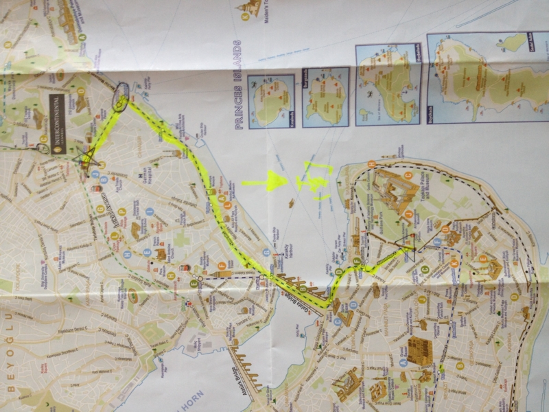 女孩叫Lucy, 从芝加哥来。男孩叫Philip,从瑞士来。有趣的是他俩都在加拿大呆过,Lucy 还是在Quebec 长大的,她妈还是在OU读的书。他俩都是来这里短期学习土耳其语的,两人也才认识,所以搭伴出来玩。他们要去的地方基本跟我要去的是一个地方,我们就一路聊着,以至于我根本没注意怎么走的,反正是先在Kabatas 下了地铁,出来坐有轨电车。Philip 话不多,不知道是不是因为有我这样的陌生人在场的原因。一路上倒是 Lucy 不停地在说,说她在芝加哥是中学老师,这次出来学习带vacation 等等。Lucy 教了我几个土耳其字母的发音:土耳其语里不带头上一点的那个字母"i"读作汉语拼音里的 "e"; 长个尾巴的那个"s" 发英语里"sh"的音。还说了几个我没记住。
