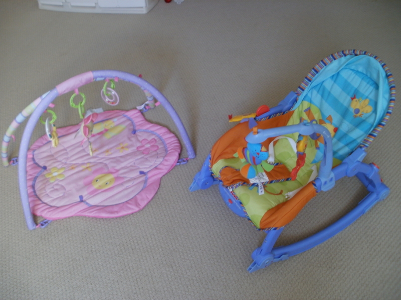 红色三轮车10刀 ,baby gym 10刀(带音乐),小摇椅rocker(带音乐),可以从婴儿用到4岁20刀,婴儿 洗澡的架子3刀,Dora的便盆(三合一功能),10刀,pampers sensitive baby wipes一包,里面有三个独立包装,4刀。所有的东西都是一手的,我还有一张Similic5刀的coupon,pampers 5刀的coupon,还有Heinz的baby food 2.5刀的 coupon ,送给买东西的妈妈。如果感兴趣,请给我回悄悄话。我家在kanata