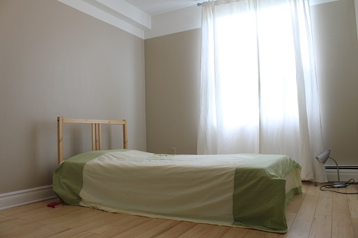 该公寓客厅(约25平米,带closet) 出租, $325/月,房租包水、电、暖和楼内设施;