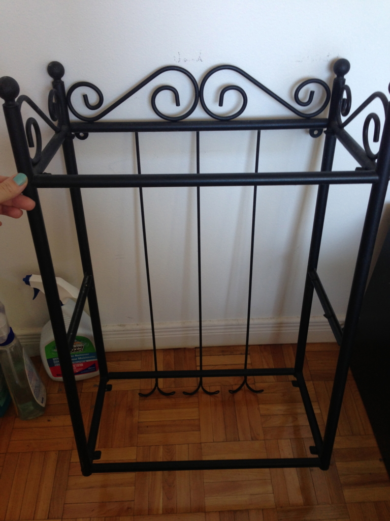 洗漱架子,黑色的,有三块镜子,女生可以放些化妆品,或者放在浴室摆放东西也可以$10.