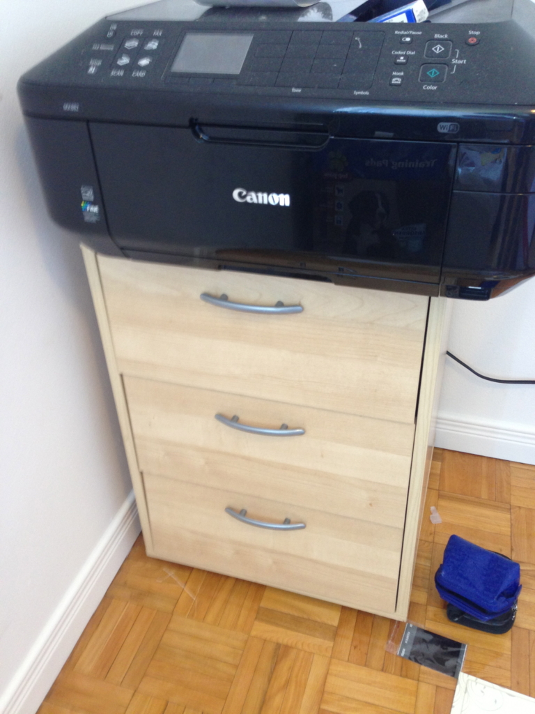 白色三层小柜子旁边带抽屉放杂物的那个 -》降价 $5
