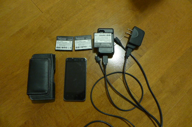 带两个充电器, 两根数据线, 一块原装电池加三块副厂电池, 还送个皮套。 屏幕已经贴膜。