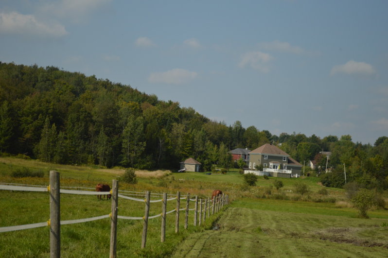 这几匹骏马很帅啊。山脚下的农庄,好漂亮,还有马场。