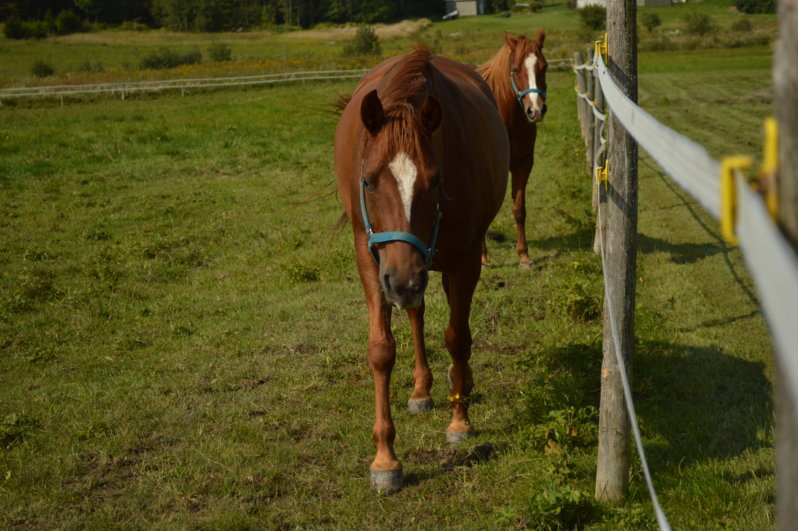 这两匹马是人来疯,当它们看到我后,急急的向我走过来,我不敢走得离它们太近,万一它们一蹄子我的脑袋,那可不得了。