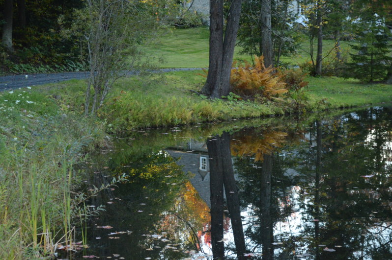 而下面的这幅,表现的着重于秋色的美和完美抛物线倒影,所以就把水塘一览无遗的拍出来。