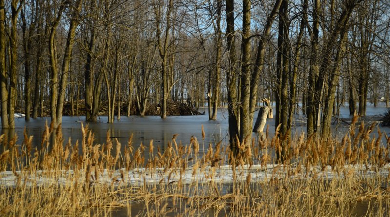 很不错的照片,不像是春天,倒像是秋天当冰雪融化之后,一些森林处于一片汪洋之中,这就是低洼地吧。