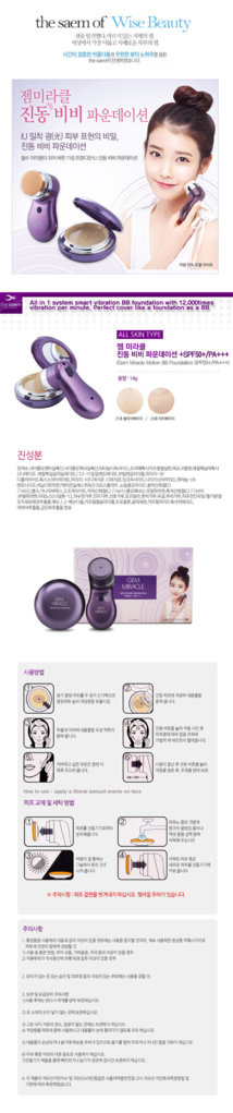 权志龙、IU代言 The Saem招牌产品,震动BB粉底液 使用方法也很简单哦! 1.用震动刷按压在容器中央部位,提取适当的量。 2.然后把震动刷的开关打开,用震动刷均匀涂抹于脸上。 3.使用结束后,关闭开关,盖上盖子保管。