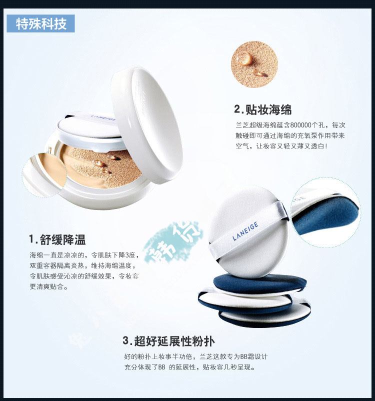 L lan_tiny 高级会员 注册 2012-07-27 消息 294 荣誉分数 1 声望点数 78 2013-09-12 #4 Laneige兰芝气垫BB霜SPF30+PA++ 美白 遮瑕 防晒 裸妆 明星推荐产品哟 一直保持清凉,令肌肤表面温度下降3度~最适合夏天清爽裸妆 附件 fenpu.jpg 84.1 KB · 查看: 37 T23dU4XgxaXXXXXXXX_!!1789639934.jpg 30.5 KB · 查看: 39 T2jWWgXlVcXXXXXXXX_!!1789639934.jpg 99.4 KB · 查看: 39