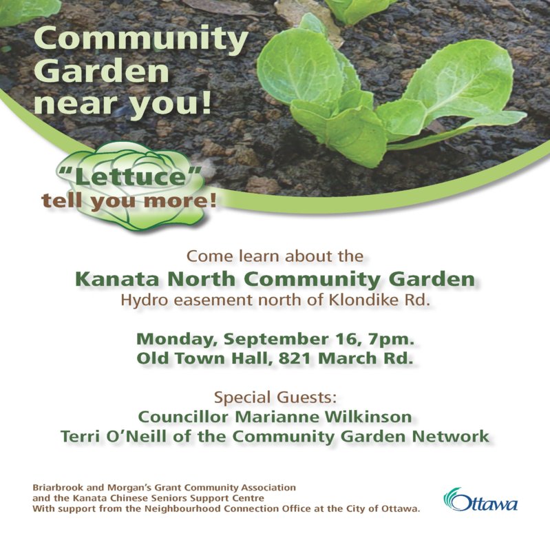 KCSSC 新手上路 注册 2011-07-13 消息 452 荣誉分数 9 声望点数 28 2013-09-16 #1 九月十六日晚上,在Kanata北区的OLD TOWN HALL (821 March Road),将有一场关于“kanata北区-社区菜圃”的公开说明会,现场欢迎大家提问题,报名参加未来菜圃的活动。 附件 201309 16-21 活动通告.JPG 198 KB · 查看: 57 Community Garden Aug 30 Poster.jpg 112.2 KB · 查看: 51