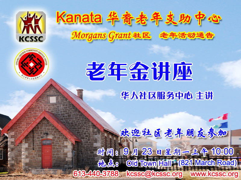 KCSSC 新手上路 注册 2011-07-13 消息 452 荣誉分数 9 声望点数 28 2013-09-20 #1 华人社区服务中心与KCSSC合作,举办“老年金讲座”。欢迎参加!请向华人社区服务中心报名登记,移民请记得带枫叶卡。电话:613-235-4875 ( 侯隽) 附件 20130923 老年金讲座.JPG 189.5 KB · 查看: 51