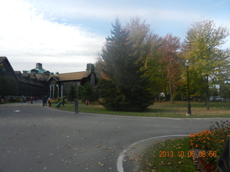 好天气好心情,朋友们简短的参观了1930年建成的著名园木饭店,它是用一万根红杉木构成的园木宫殿.红枫满园,朋友们都拍照留念.