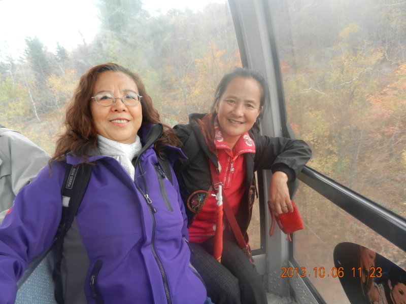 车进入Tremblant,导游叫大家瞩目了望,”啊!多美啊!”大家齐声惊叫. 这次旅游,朋友们有幸乘坐缆车高空观望,翠湖山庄Tremblant的一派秋色景象尽收眼底.在缆车上像乘坐直升机低空飞行那样,欣赏那满山遍野的红枫,真是美极了!
