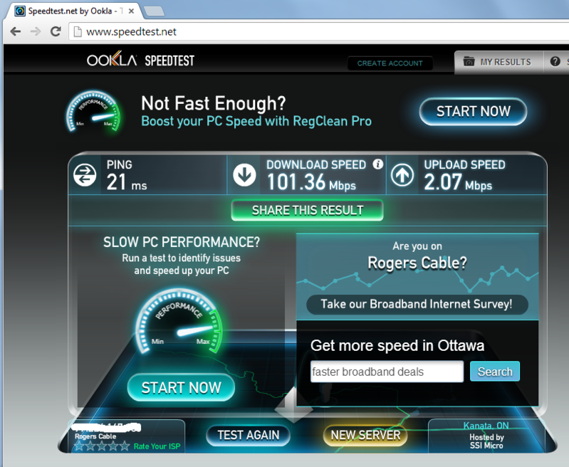 ottawa_it_blue_collar Go Loonie Go VIP 注册 2010-09-17 消息 16,668 荣誉分数 2,019 声望点数 273 所在地 村里 2013-10-14 #39 老华侨 说: 那个测试是用Magma的工具。因为其服务器就在渥太华,应该更准确些。 这个是您推荐的speedtest.net: 浏览附件371513 点击展开... 牛!